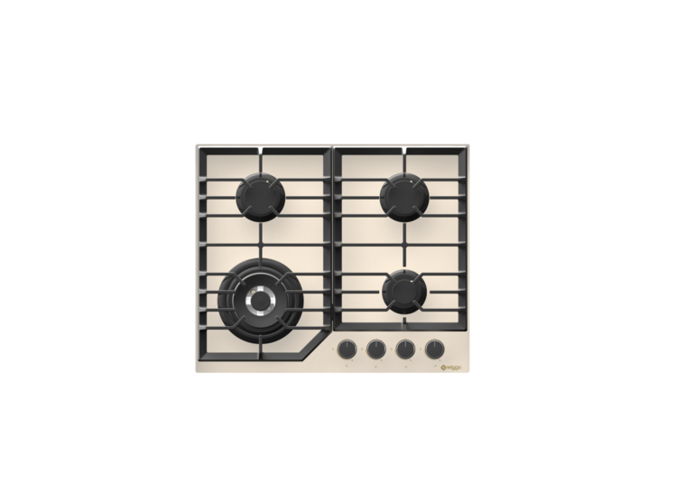 Wiggo WH-G634GL(C) - Inbouw gaskookplaat met Wok - 60cm - Creme Glas