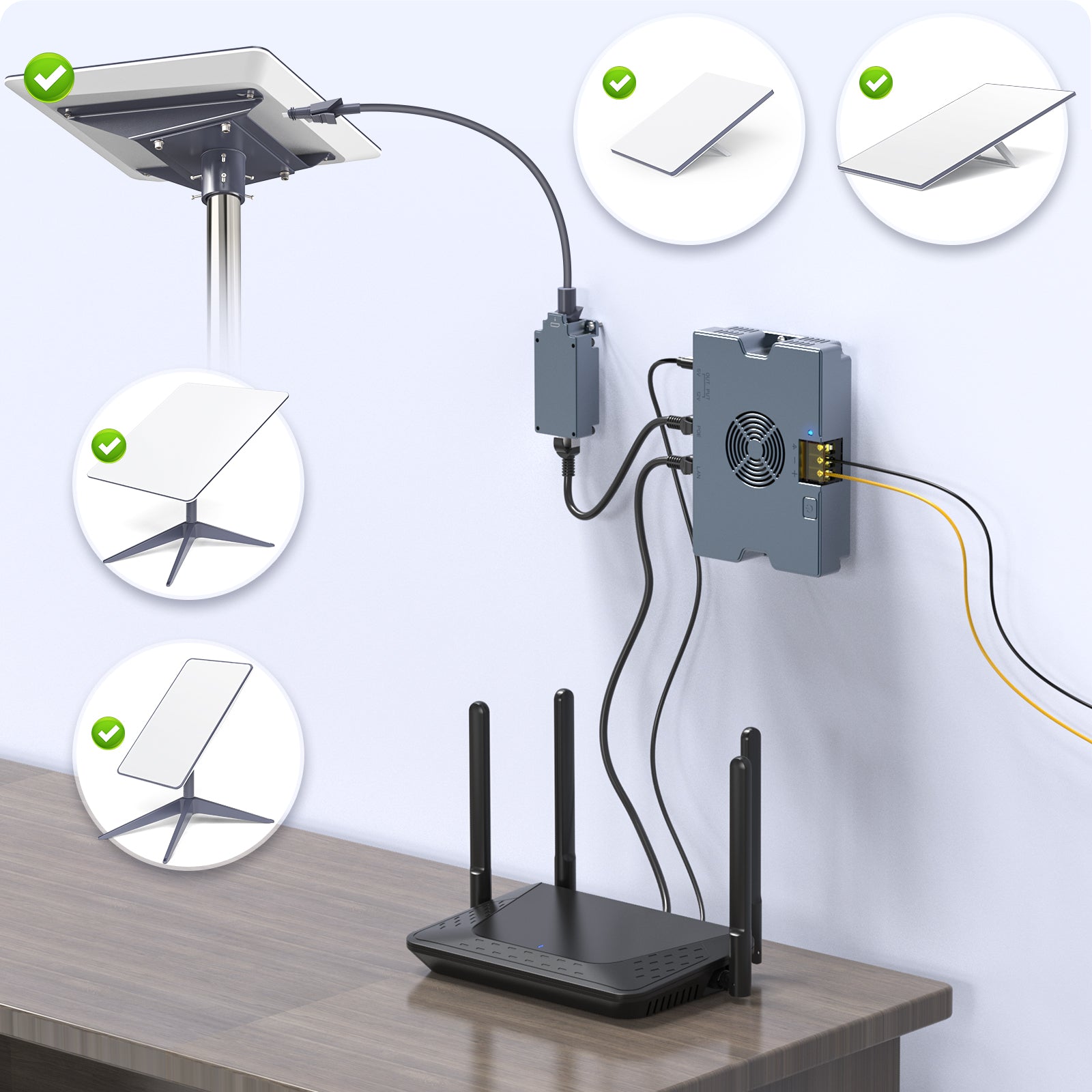 - Krachtige 350W output: Voedt moeiteloos één of meerdere Starlink-schotels via PoE (52V/6A).
