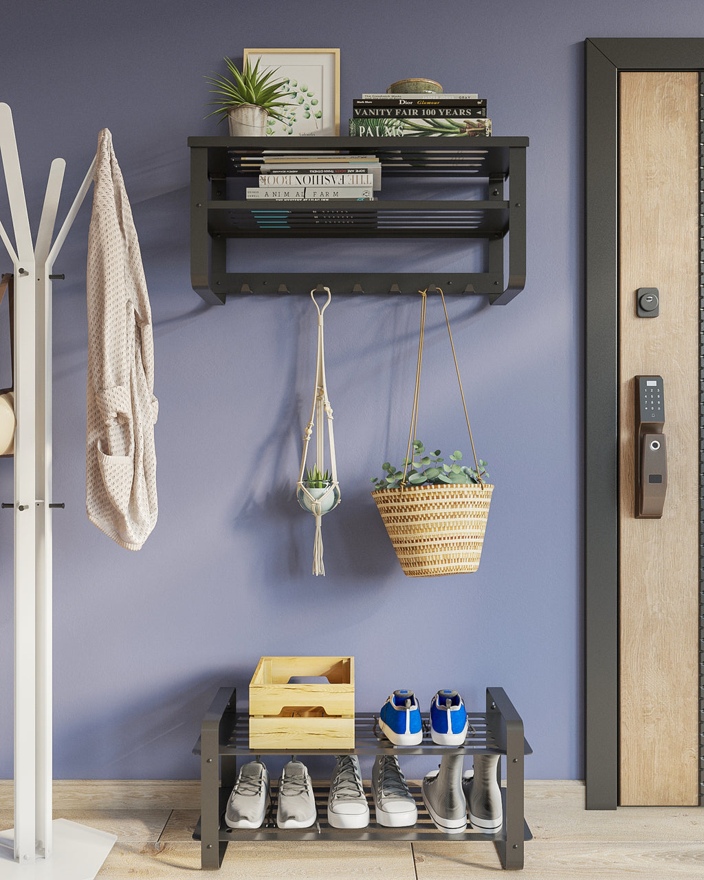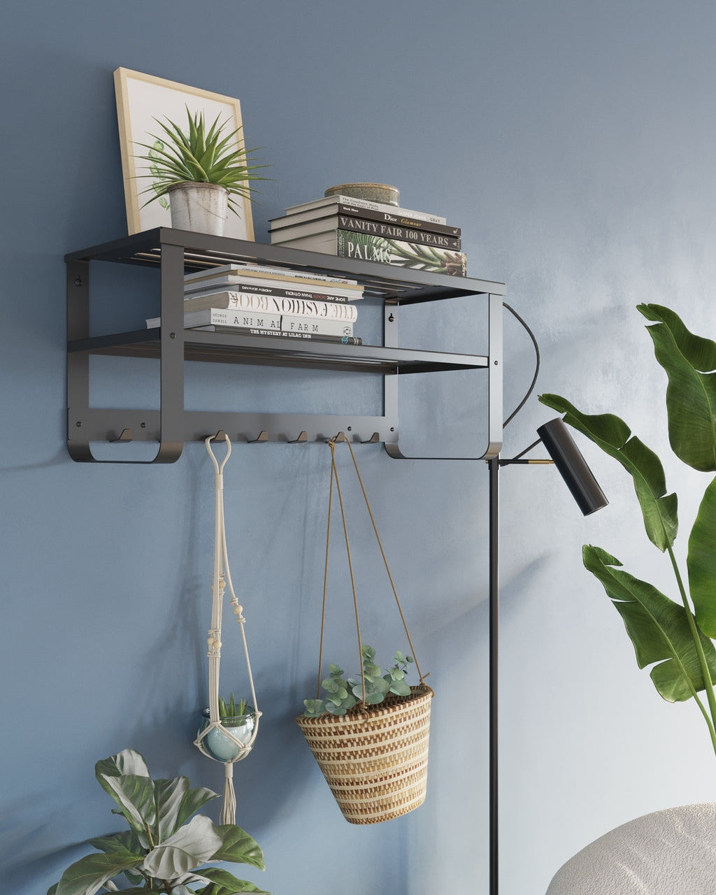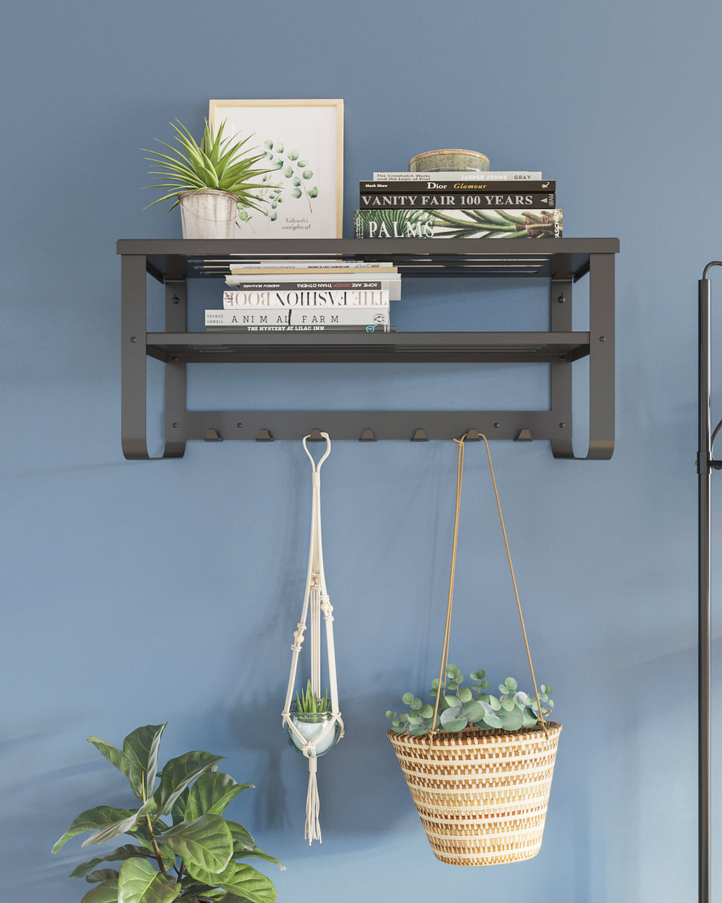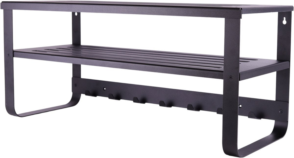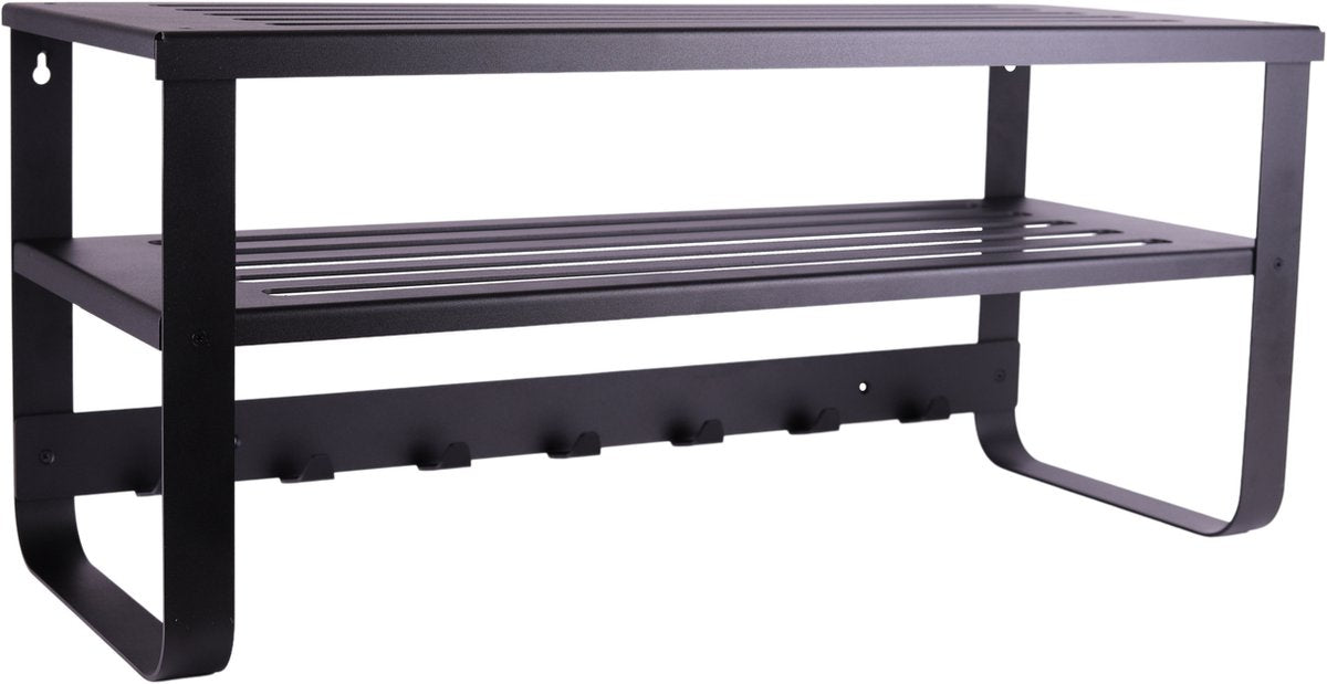 Met 7 haken kunnen voldoende jassen worden opgehangen aan deze kapstok. Naast jassen is er ook nog ruimte voor overige spullen. Gebruik hiervoor de twee planken boven de haakjes. De hoogste plank is geschikt voor hoofddeksels en de onderste plank is perfect voor handschoenen en overige spullen. Zo heb je alles bij de hand en dicht bij elkaar. Je bespaart op deze manier veel ruimte.