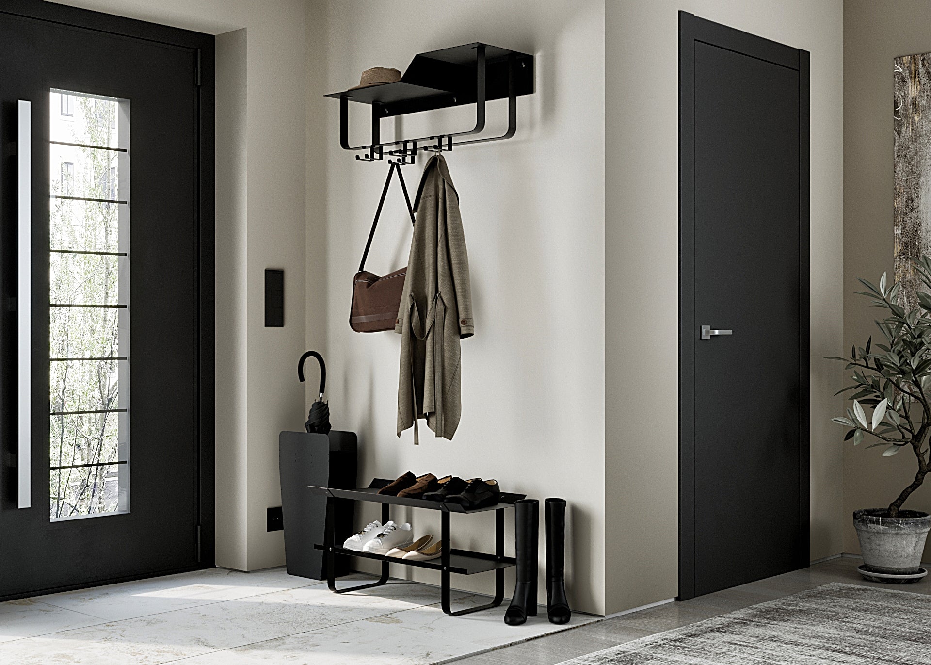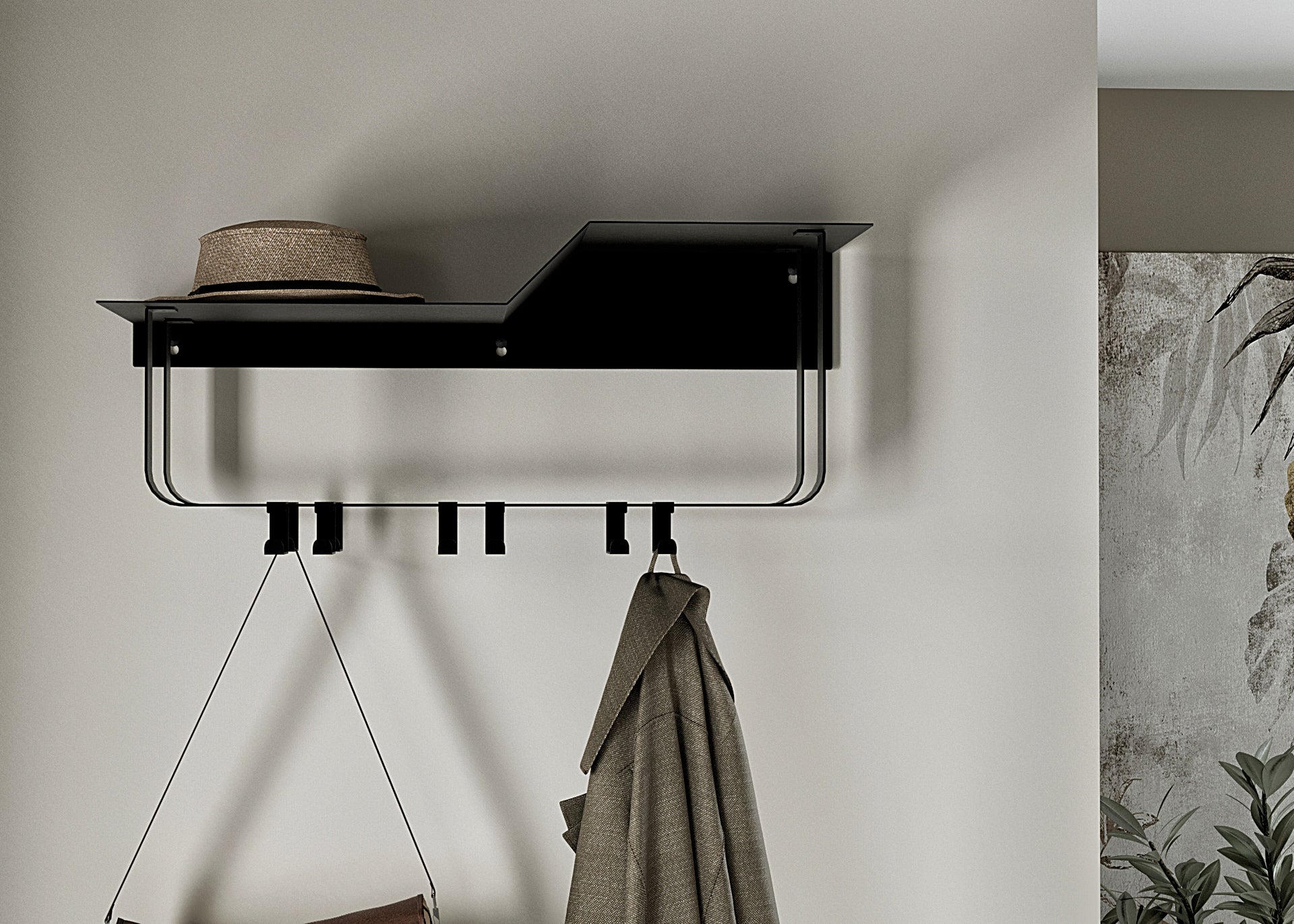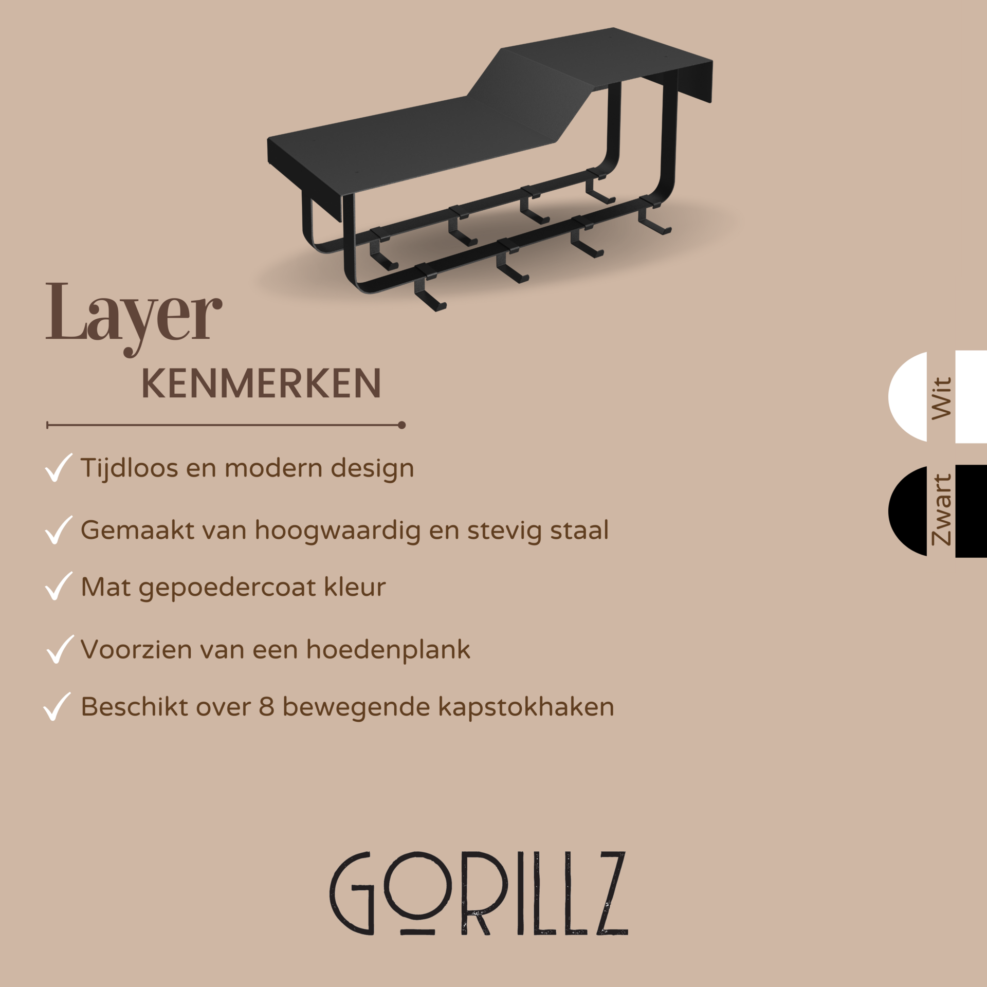 Gorillz Layer - Wandkapstok Met Hoedenplank - 8 Verschuifbare Kapstok Haken - Zwart