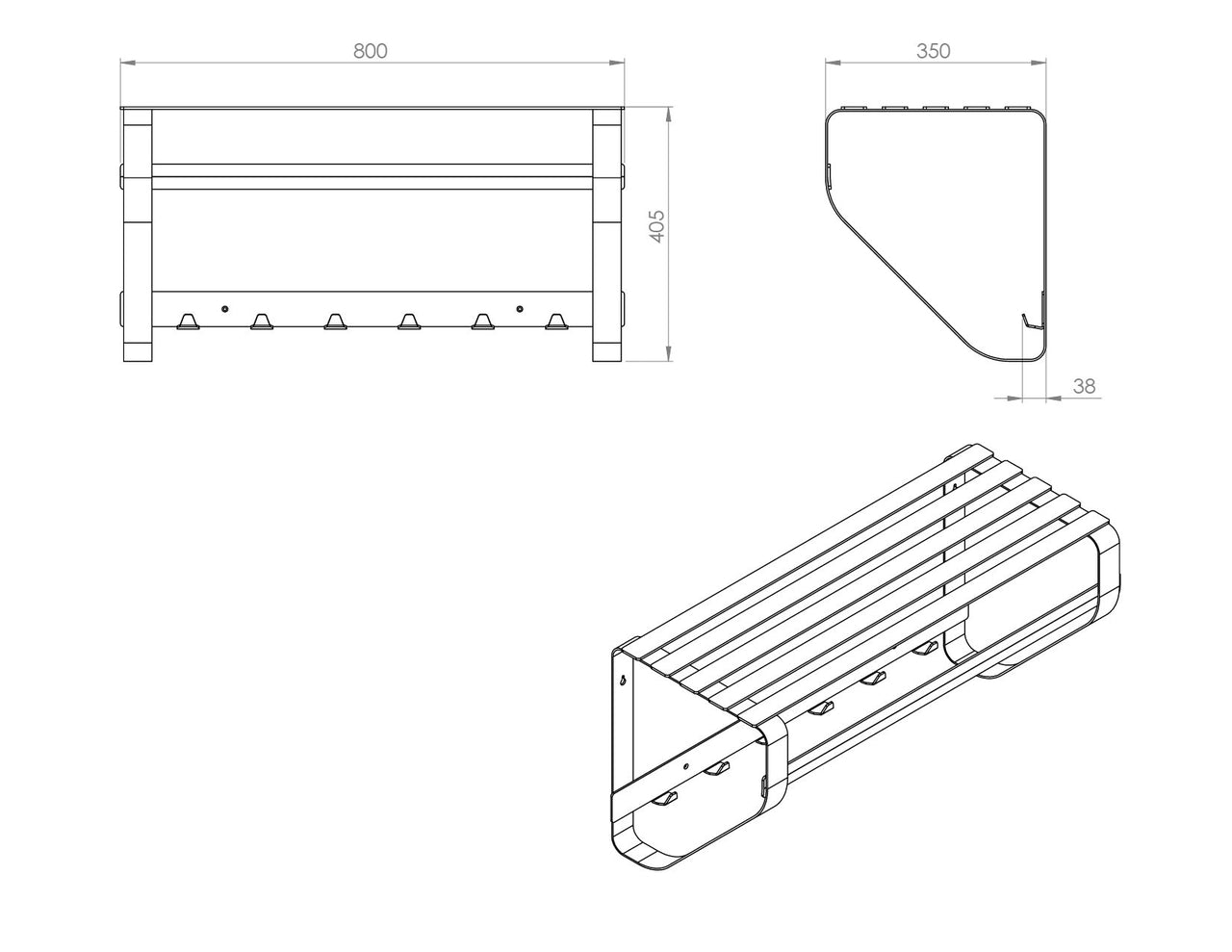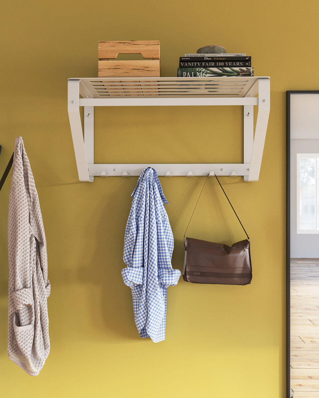 Het bevestigingsmateriaal wordt bij de aankoop van de Iron Wandkapstok meegeleverd. Zo heb je altijd binnen korte tijd de kapstok al bevestigd. Bevestig eerst de planken om vervolgens het geheel aan de muur te monteren. Markeer de gaten vooraf, om er zeker van te zijn dat het geheel waterpas komt te hangen.