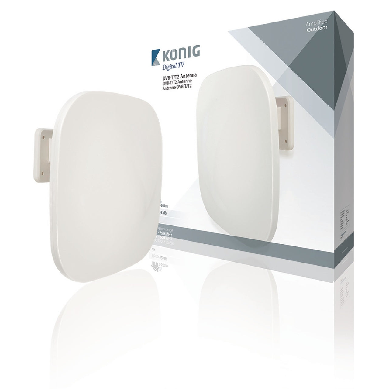 Deze König DVB-T/T2-buitenantenne garandeert een stabiele ontvangst van free-to-air-kanalen, betaalde zenders (als u geabonneerd bent) en FM-radio. De antenne heeft een onderscheidend, strak design en is ideaal om in het zicht te plaatsen.