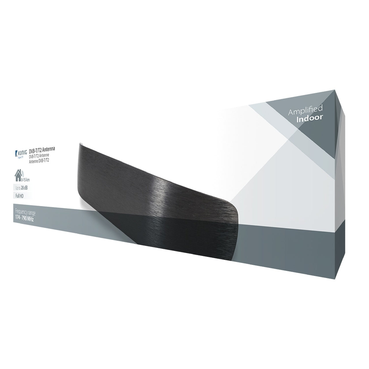 Deze König DVB-T/T2-binnenantenne garandeert een stabiele ontvangst van free-to-air-kanalen en – als u geabonneerd bent – betaalde zenders. Door zijn onderscheidende, strakke vormgeving is de antenne ideaal om in het zicht te plaatsen.Specificaties