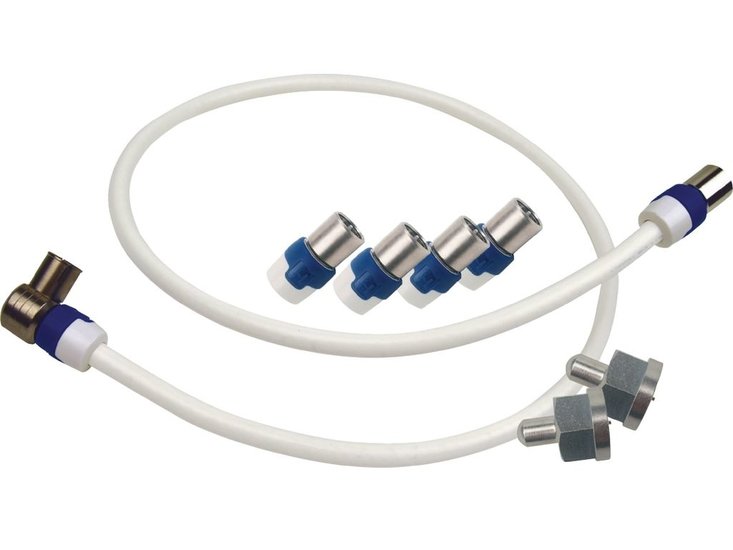 et de voorgemonteerde KOKA 9 TS coax aansluitkabel, de push-on connectoren en