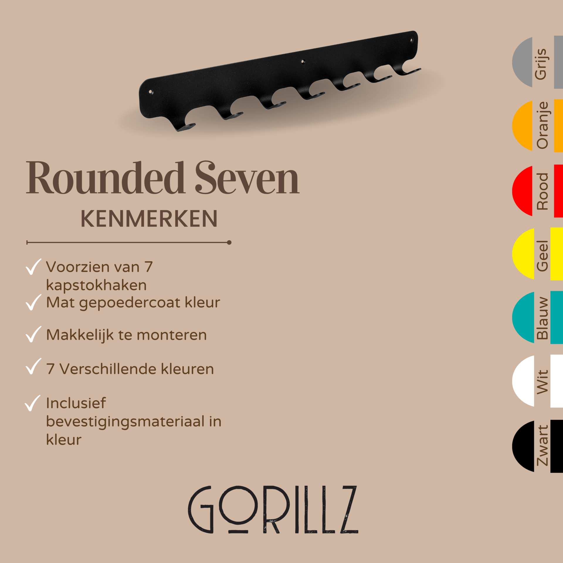 Gorillz Rounded Seven - Wandkapstok - 67 x 6 x 7,8 mm - Zwart