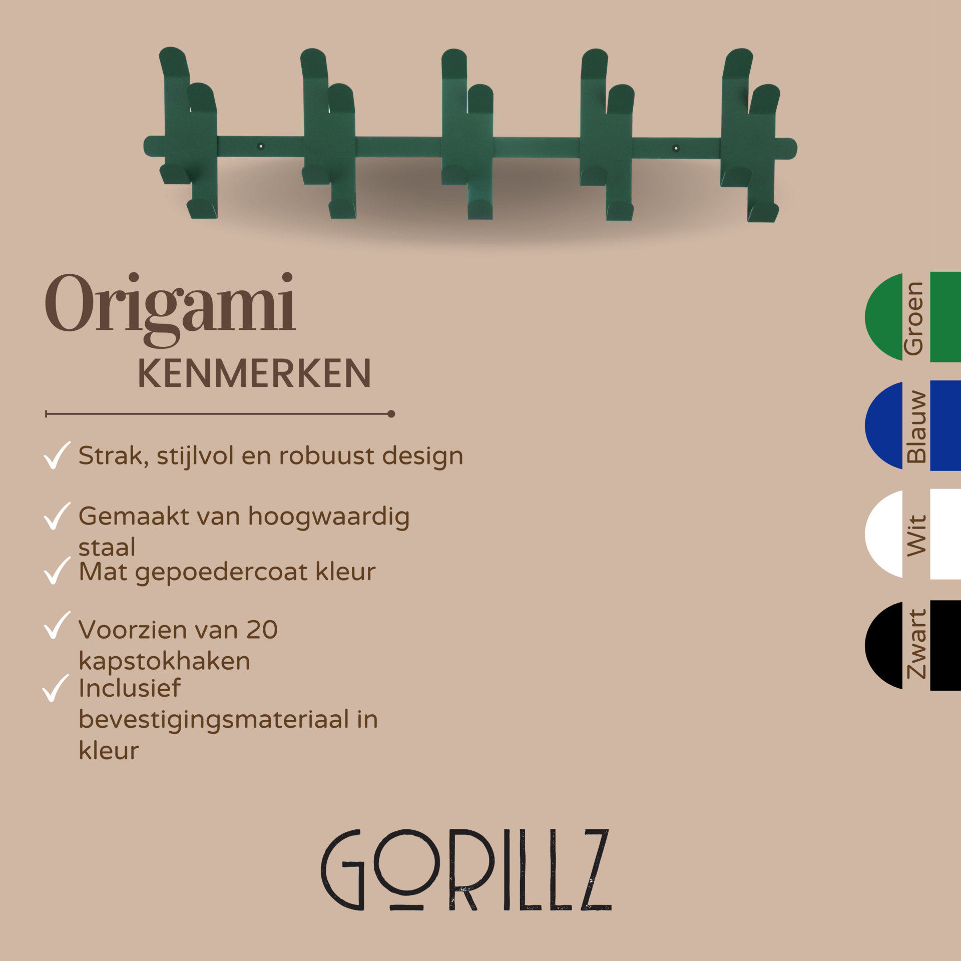 Gorillz Wandkapstok Origami - Wandkapstok - 20 haken - Groen