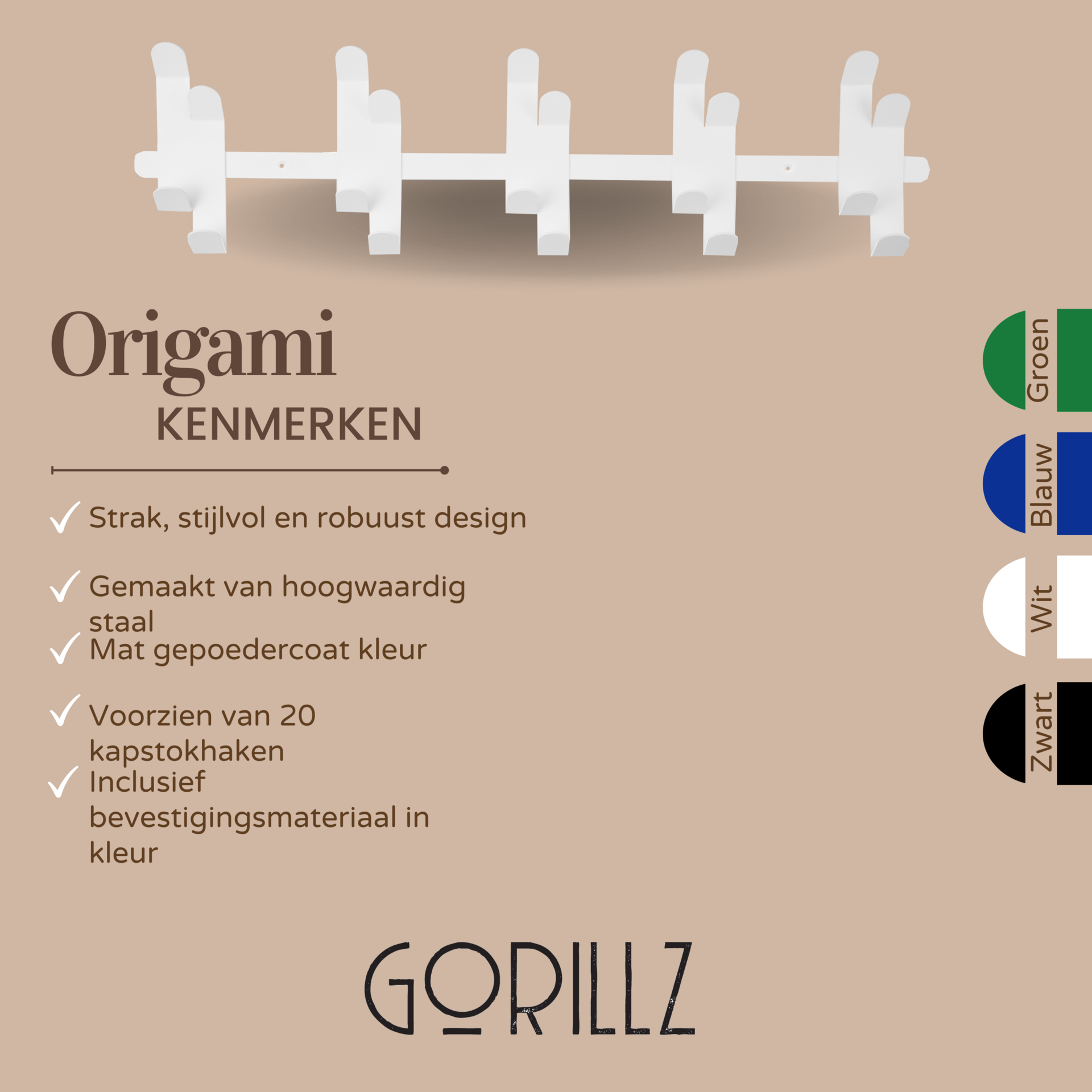 Gorillz Wandkapstok Origami - Wandkapstok - 20 haken - Wit