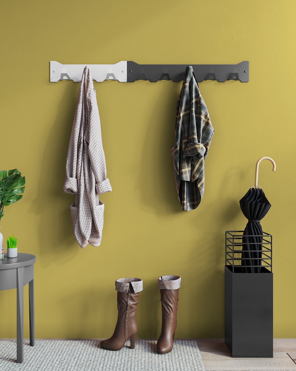 U kunt de Triangle Five combineren met de Triangle Three, waardoor u de combinatie kunt maken met diverse kleuren. Daarnaast kunt u hierdoor ook de gewenste aantal kapstokhaken bepalen. U kunt in de gang kiezen voor een moderne en strakke uitstraling of voor een vrolijke en speelse uitstraling in de kinderkamer. De ideale oplossing om de gang of de gewenste kamer een make-over te geven!