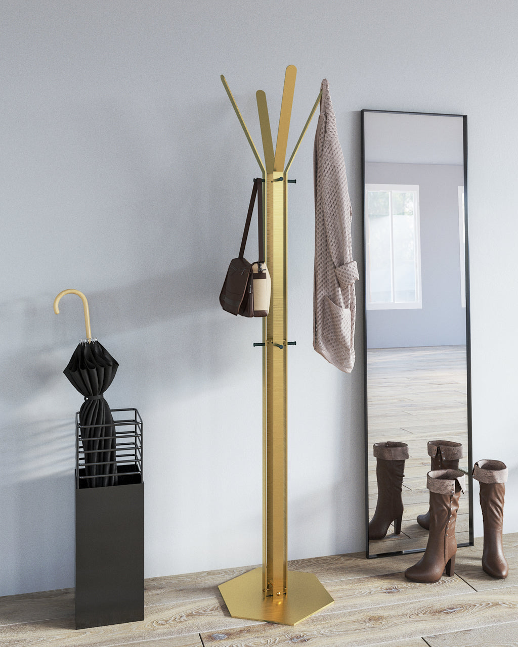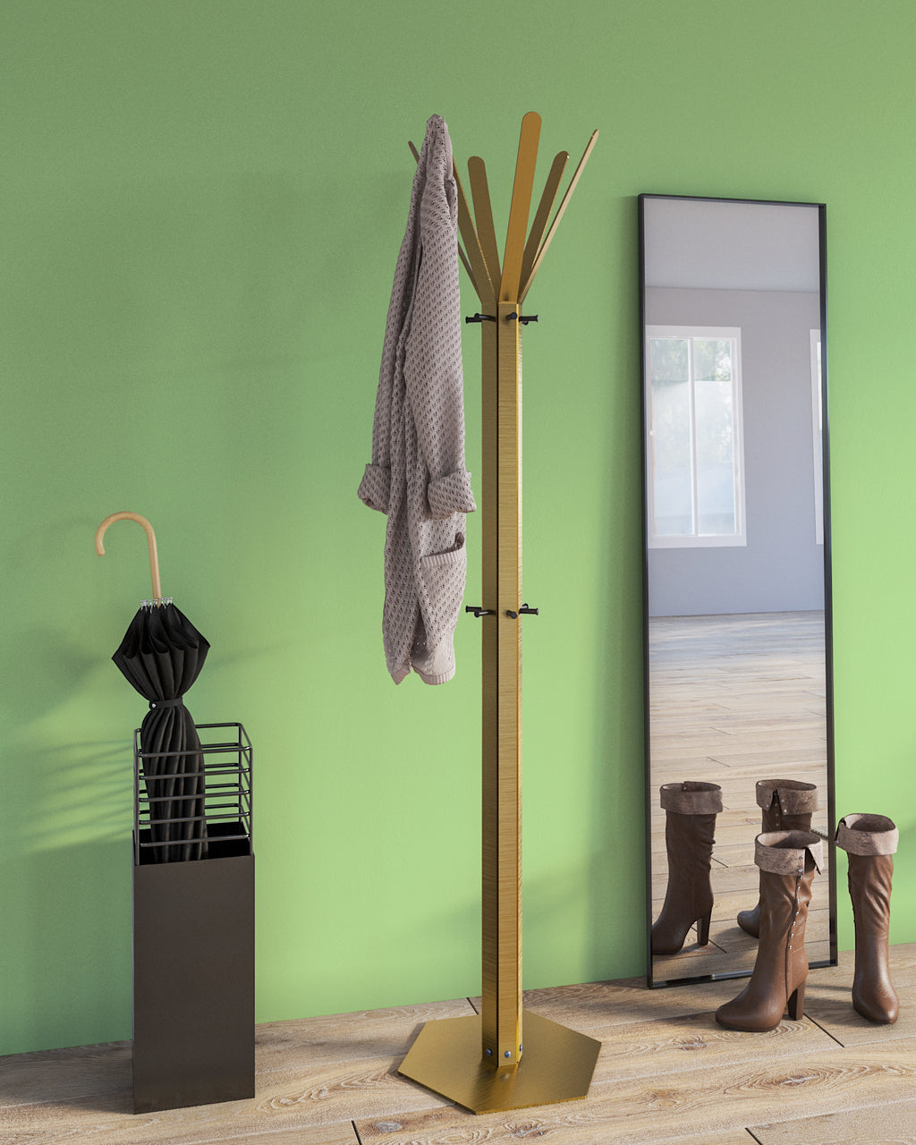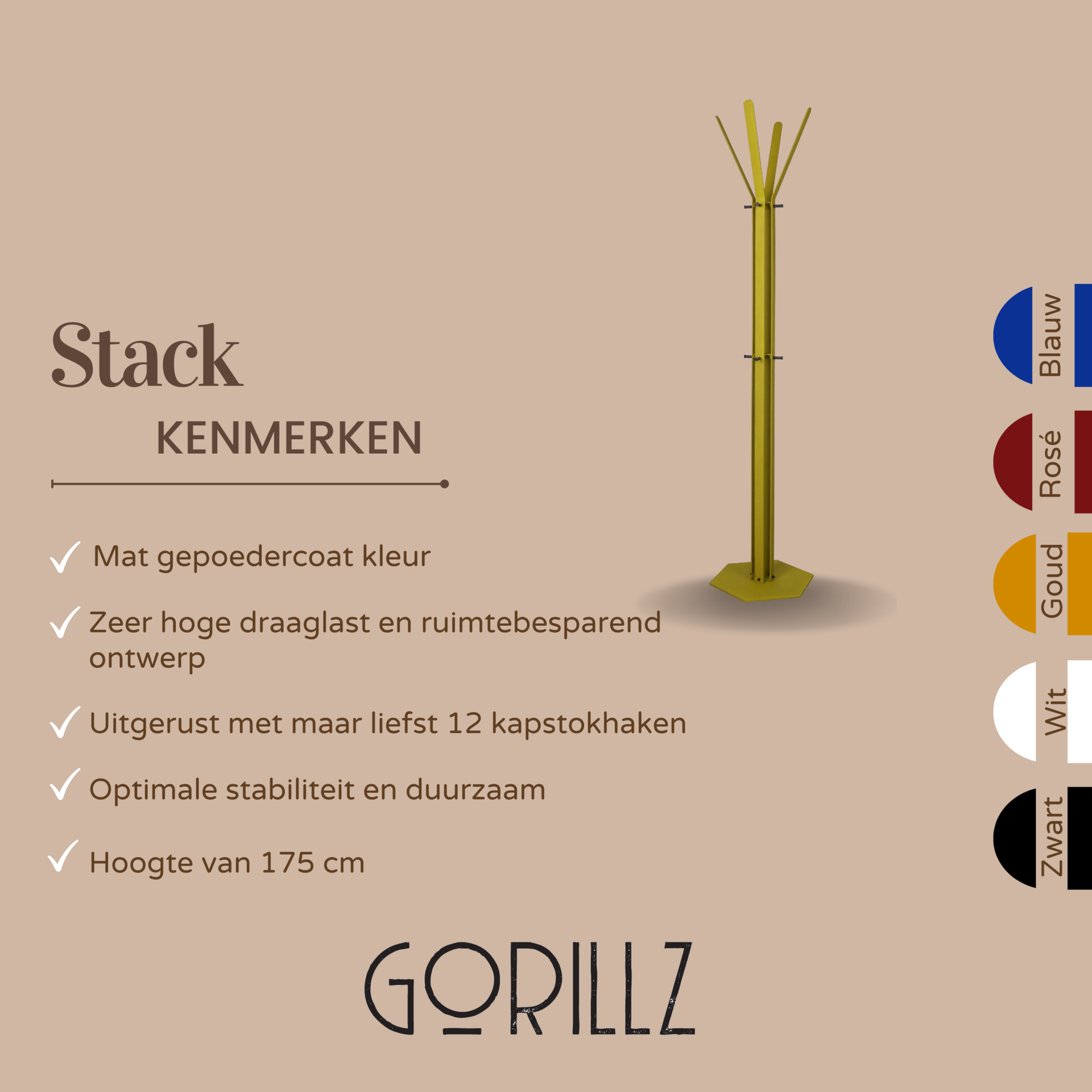 Gorillz Stack - Kapstok Staand - Staande kapstok	- Metaal - 12 Kapstok haken - 174,5 cm - Goud / Gold