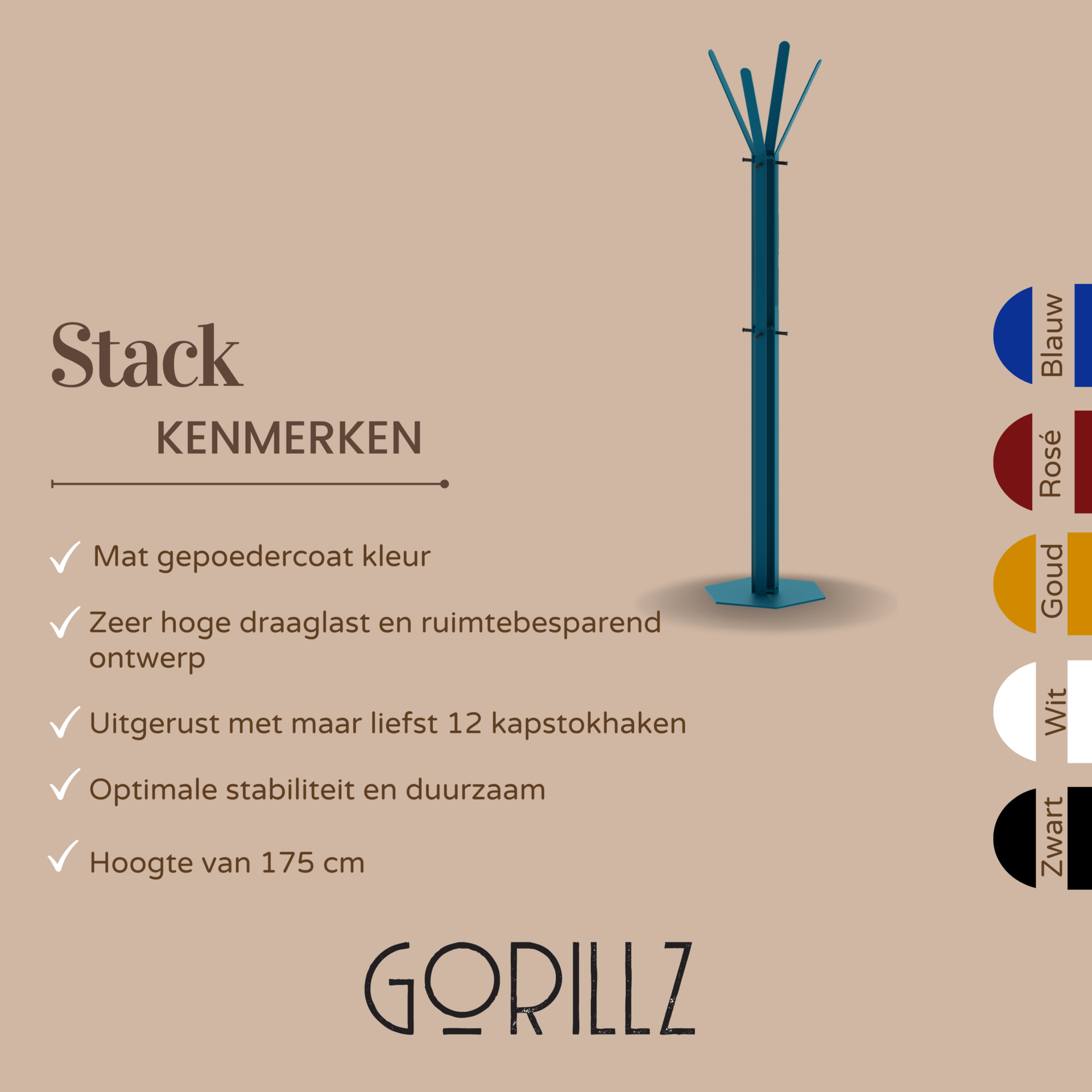 Gorillz Stack - Kapstok Staand - Staande kapstok	- Metaal - 12 Kapstok haken - 174,5 cm - Blauw