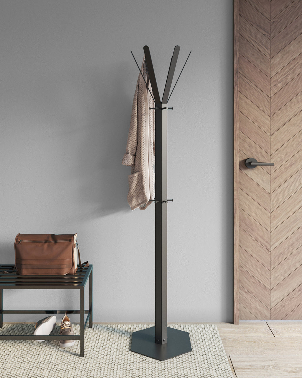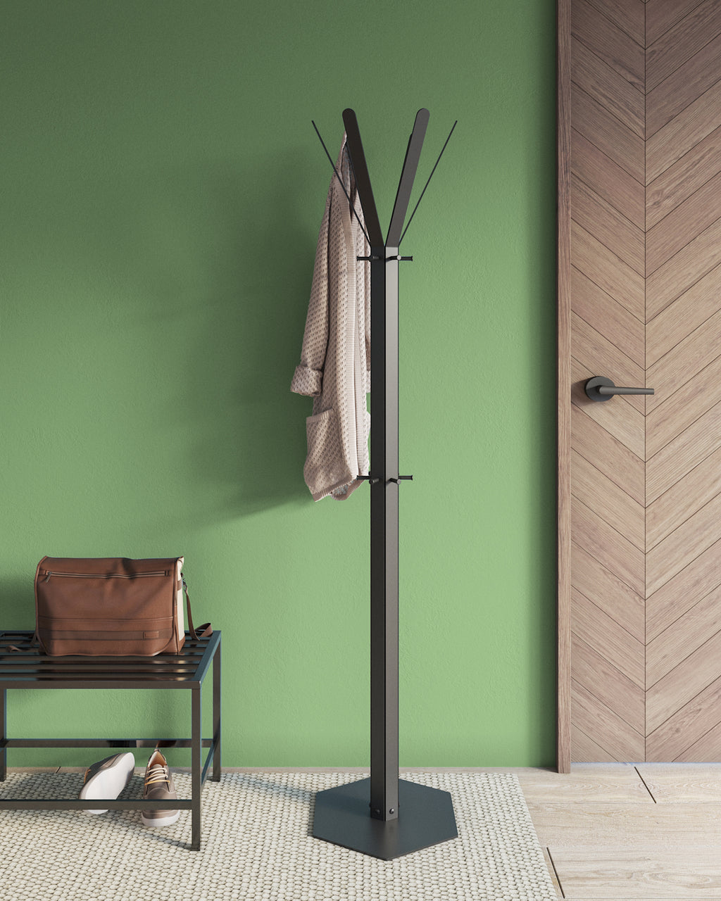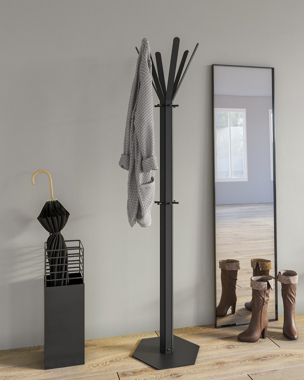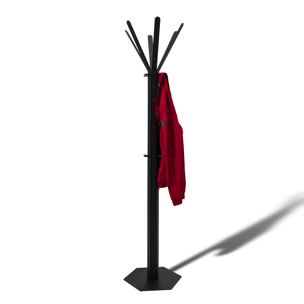 Gorillz Molto  - Staande Kapstok - 18 kapstokhaken Staande Kleerhanger (175 x 35 x 40 cm) - Metaal- Zwart