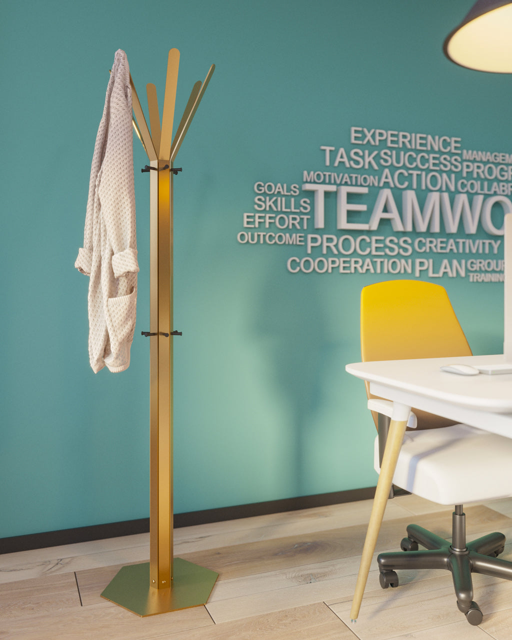 Gorillz Molto  - Staande Kapstok - 18 kapstokhaken Staande Kleerhanger (175 x 35 x 40 cm) - Metaal- Goud