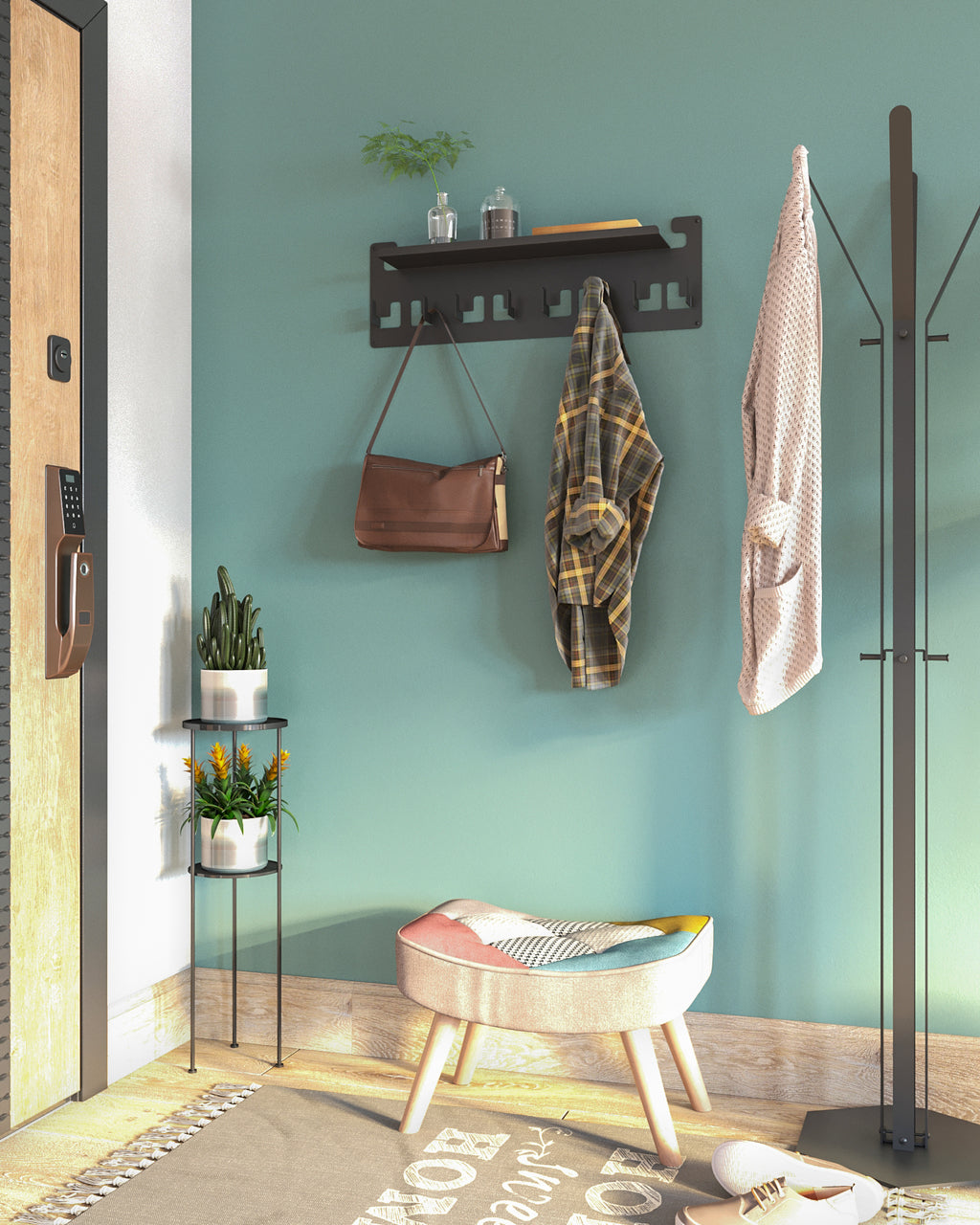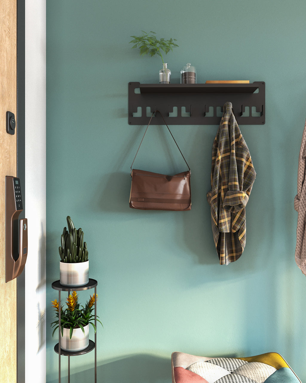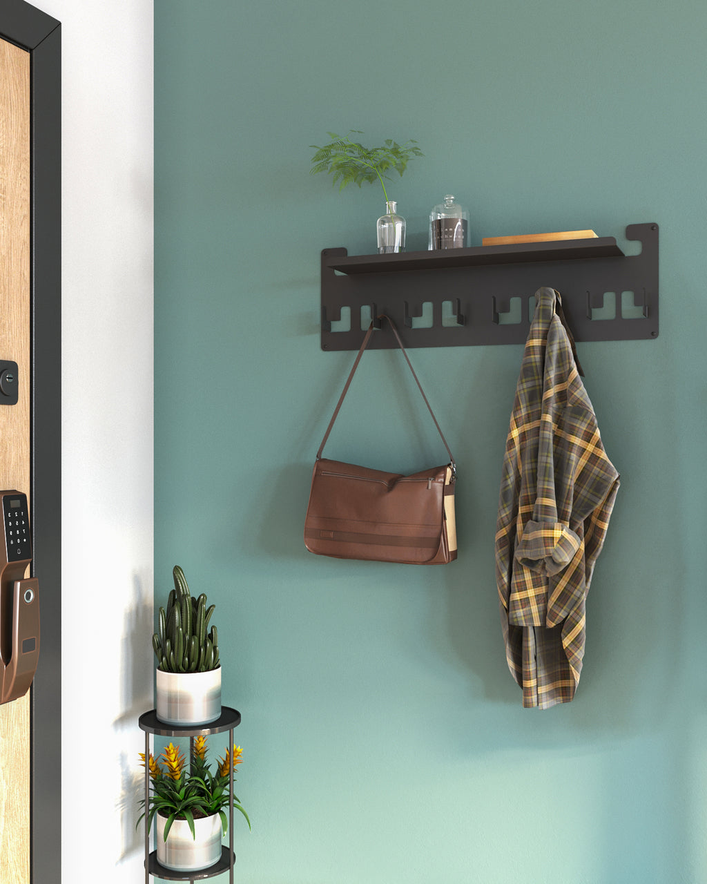Gorillz Area - Kapstok -Wandkapstok Met Hoedenplank - 8 KapstokHaken 70 CM Muurkapstok- Zwart