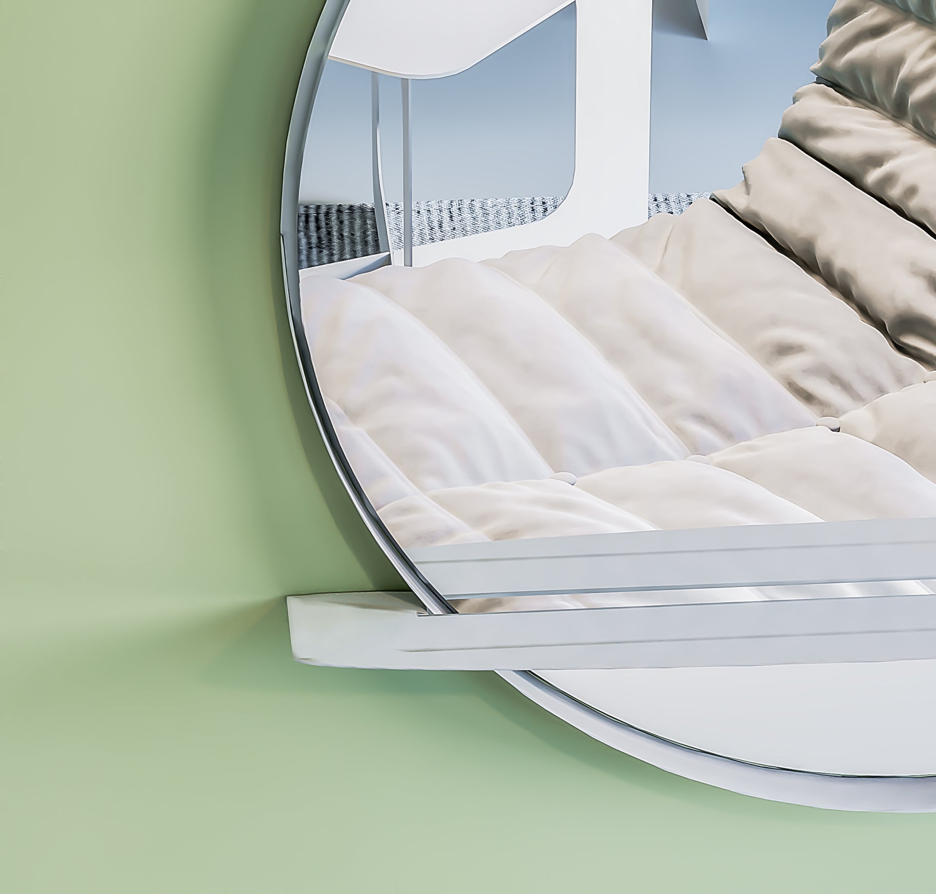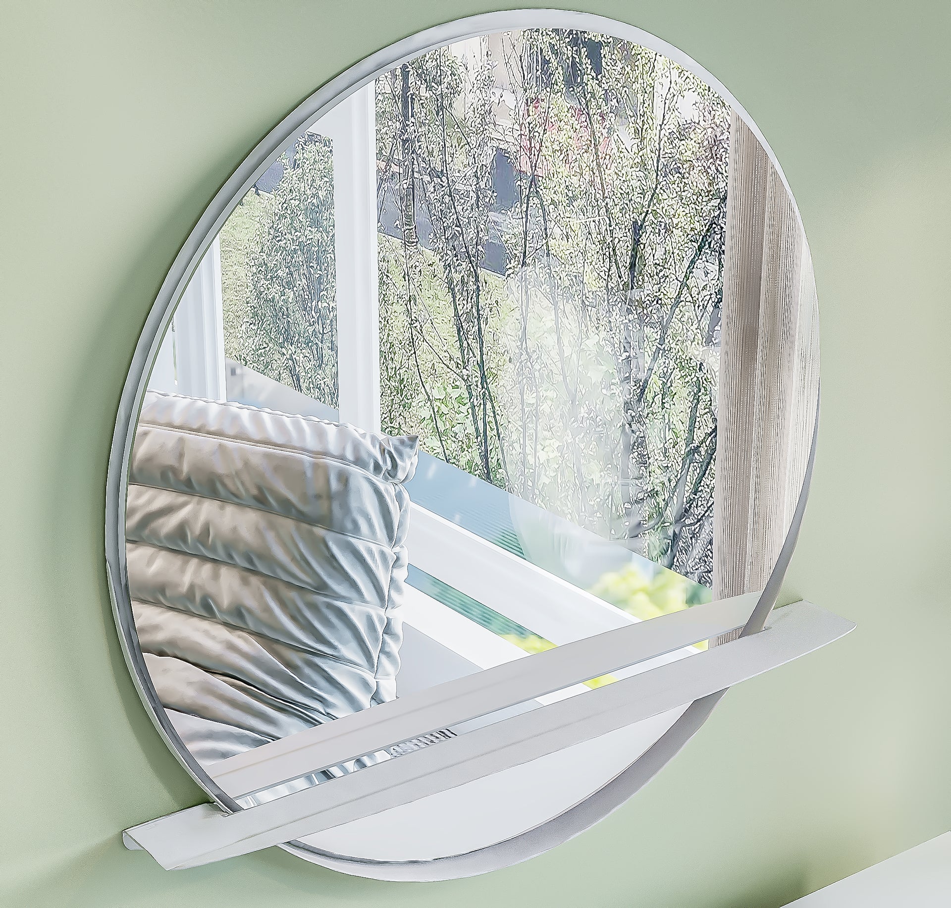Gorillz Alien 60 - Wandspiegel met Plank - Ronde Hang Spiegel - 60 cm - Staal Wit