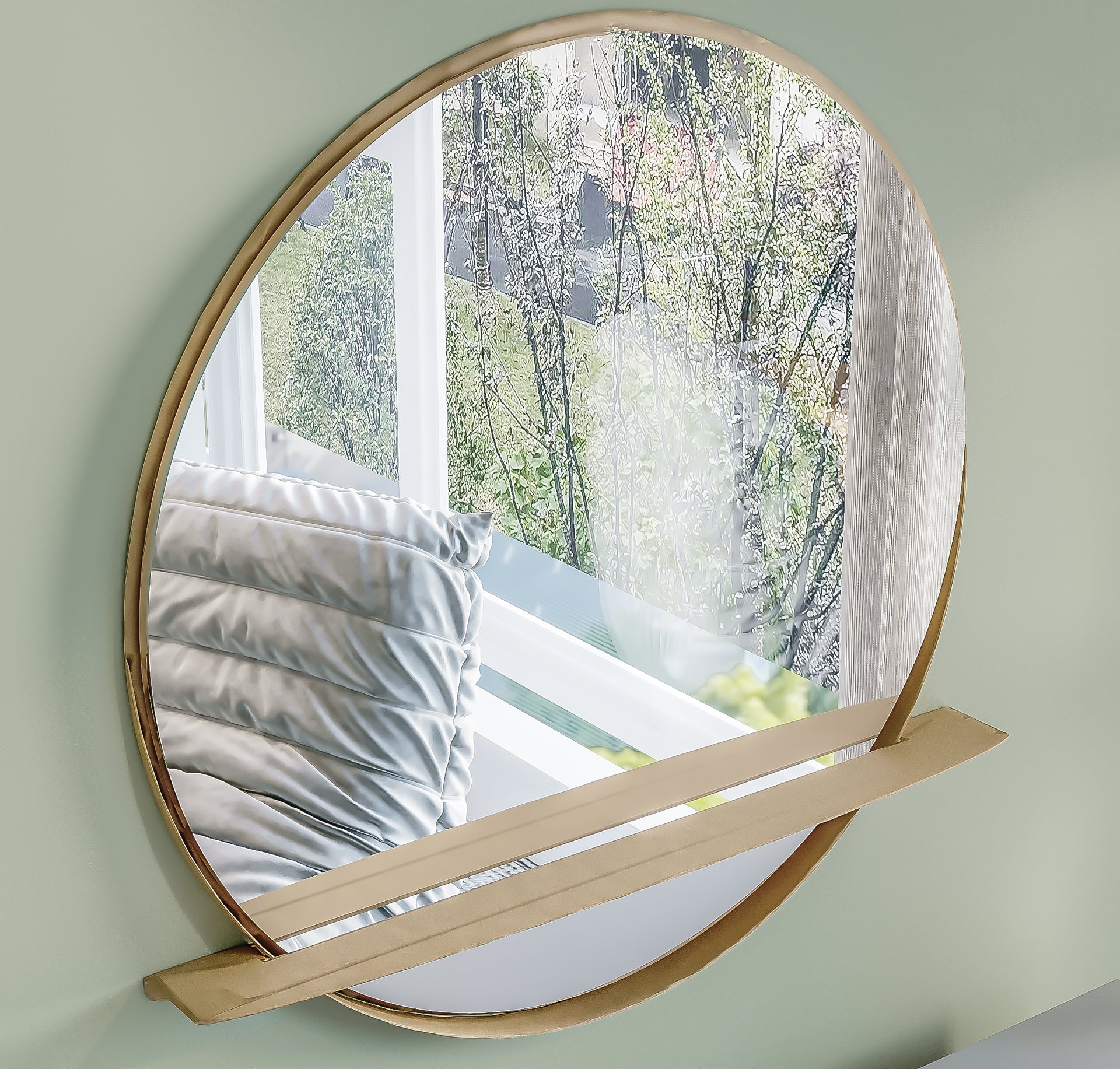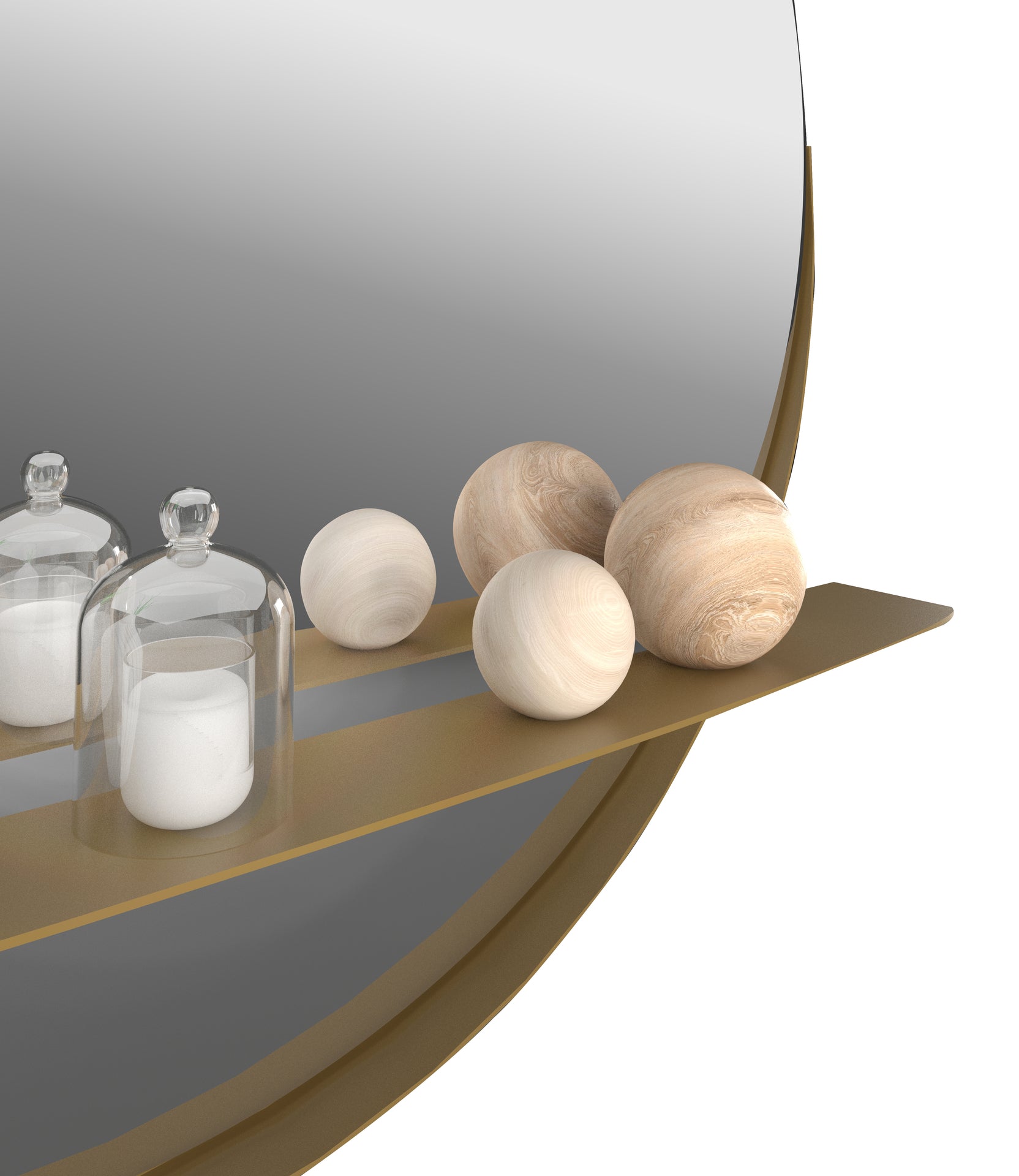 Gorillz Alien 60 - Wandspiegel met Plank - Ronde Hang Spiegel - 60 cm - Staal Goud - Gold