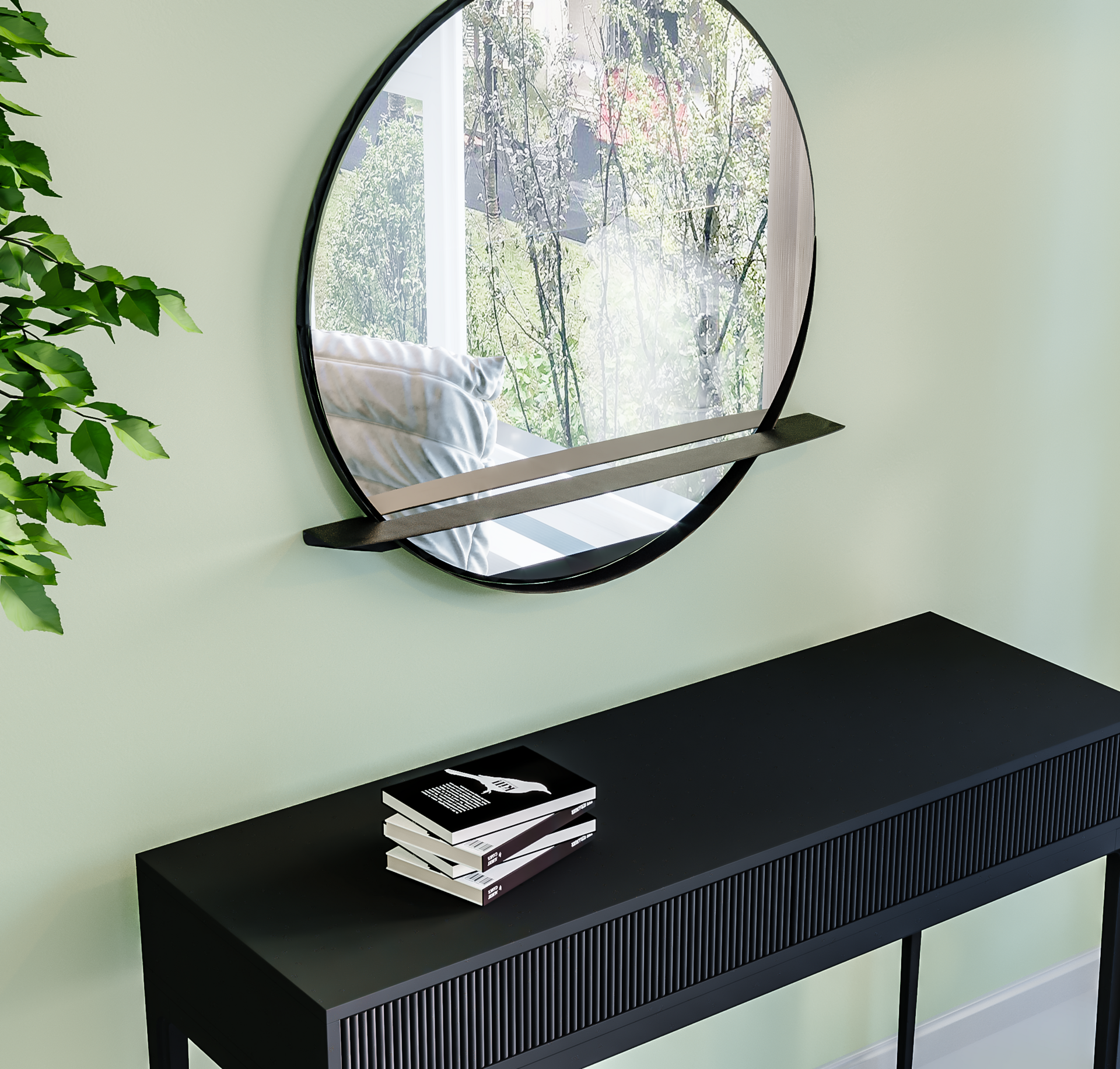 Gorillz Alien 80 - Ronde Hang Spiegel - Wandspiegel met Plank - 80 cm - Staal Zwart