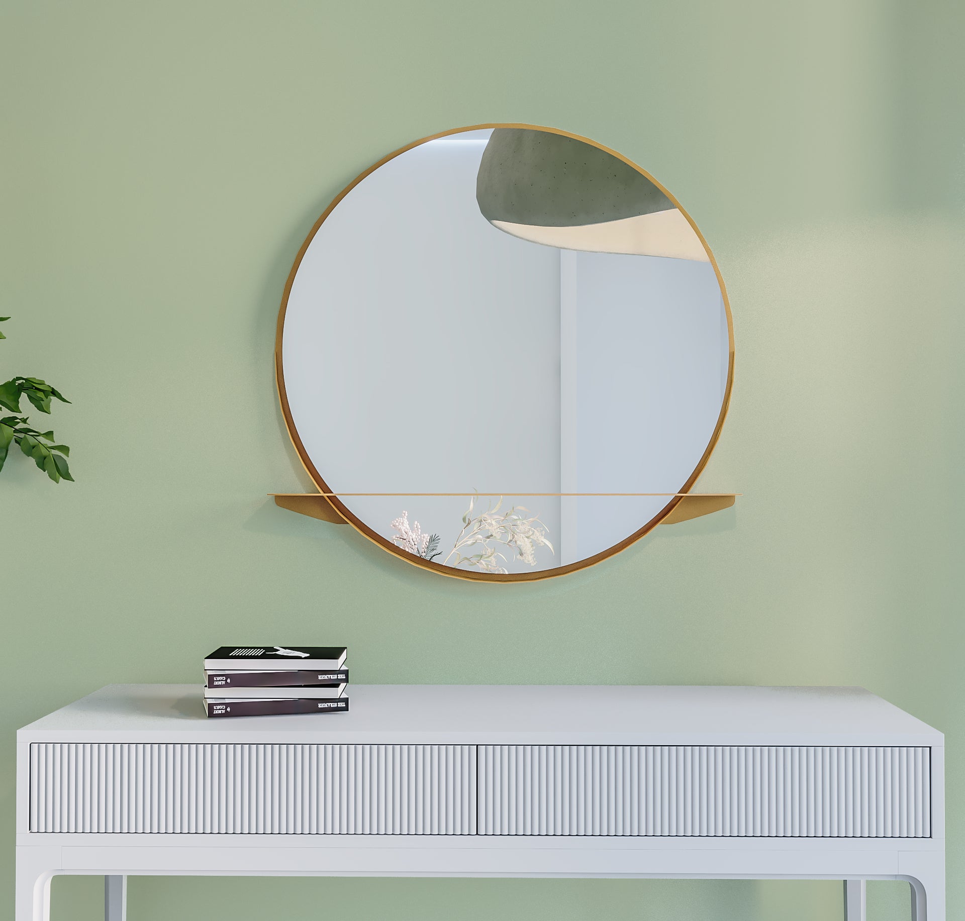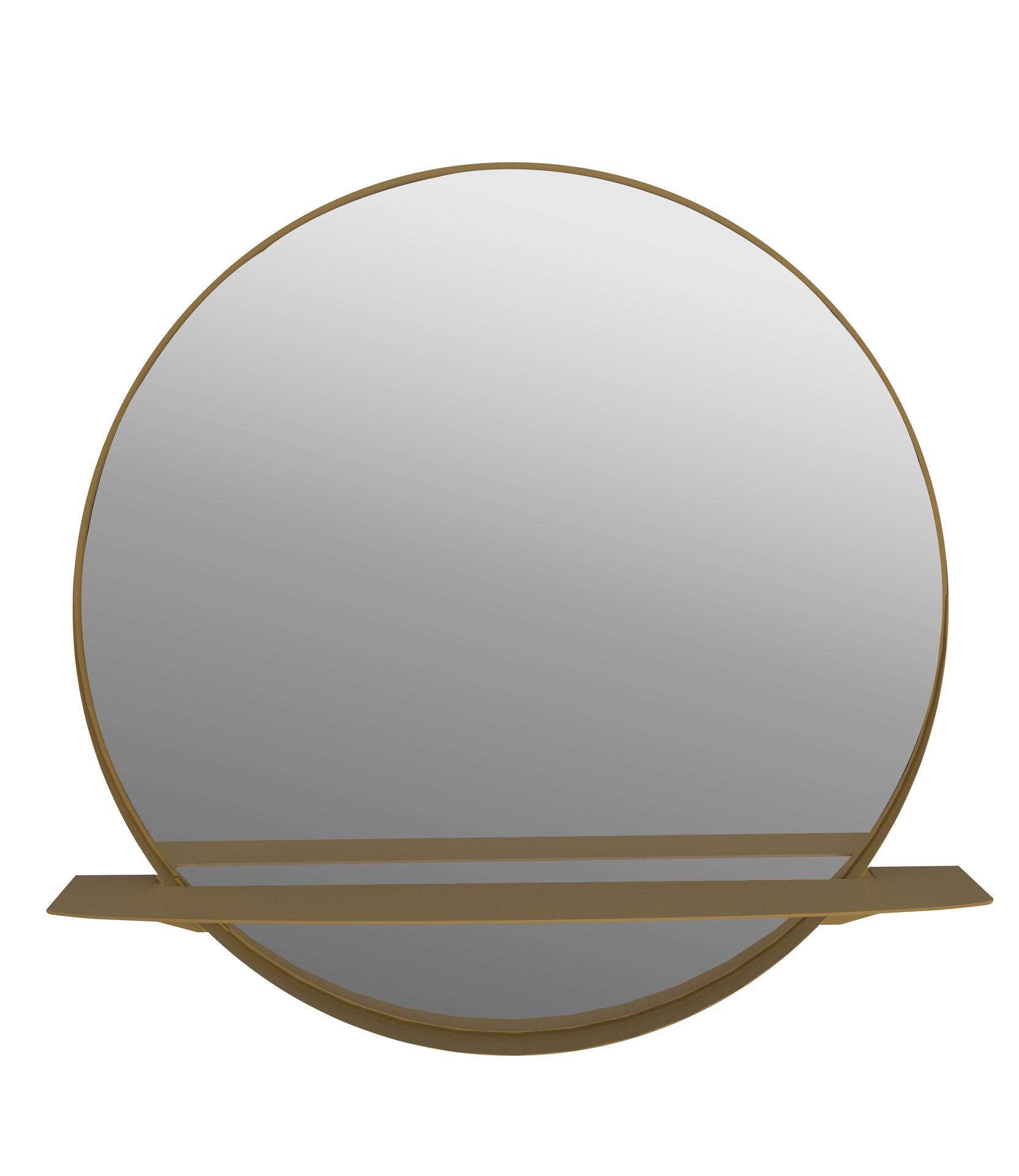 Gorillz Alien 80 - Ronde Hang Spiegel - Wandspiegel met Plank - 80 cm - Staal Goud - Gold
