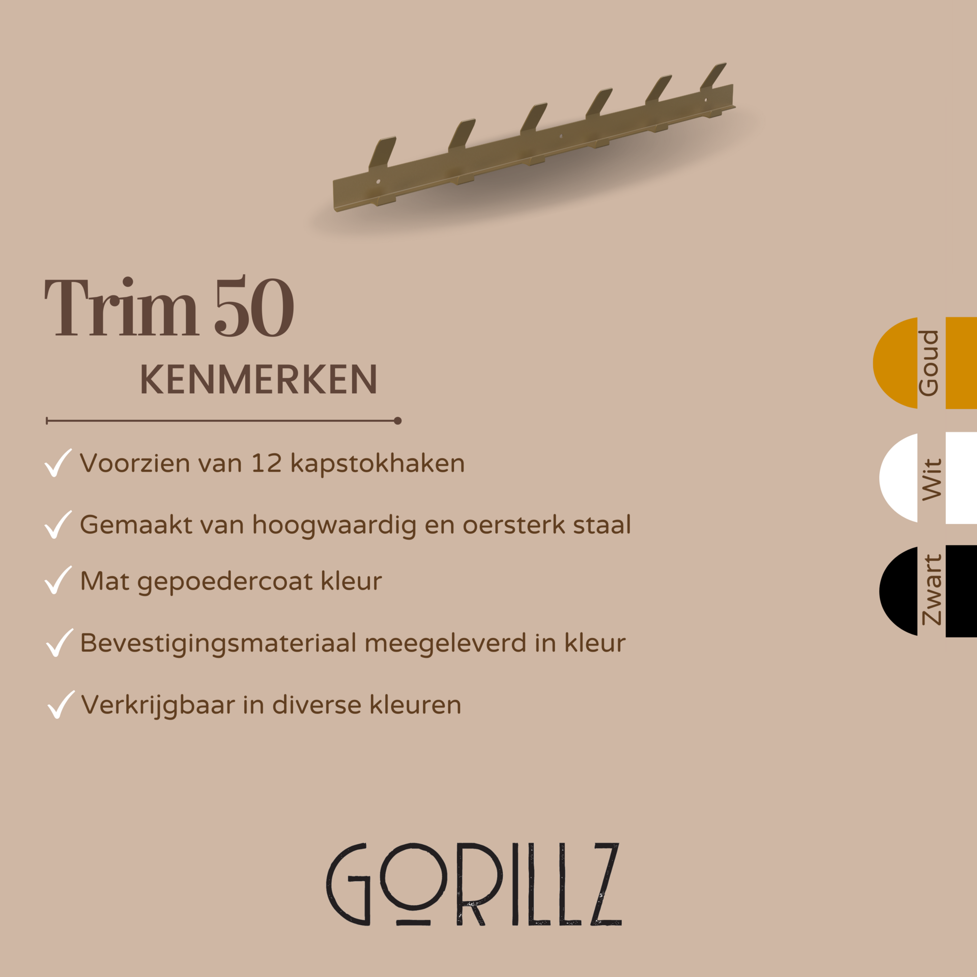 Gorillz Trim 50 Kapstok -12 haken (lengte) 55 cm - Metaal - Mat Goud
