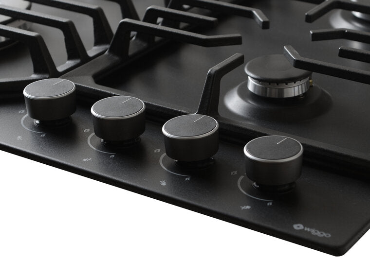 Wiggo WH-G634RL(B) - Inbouw gaskookplaat met Wok - 60cm - Zwart