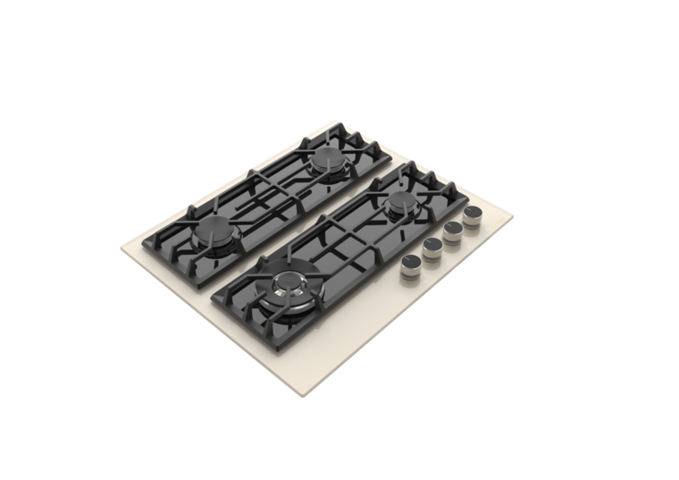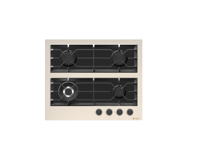 Wiggo WH-G634GR(C) - Inbouw gaskookplaat met Wok - 60cm - Creme Glas