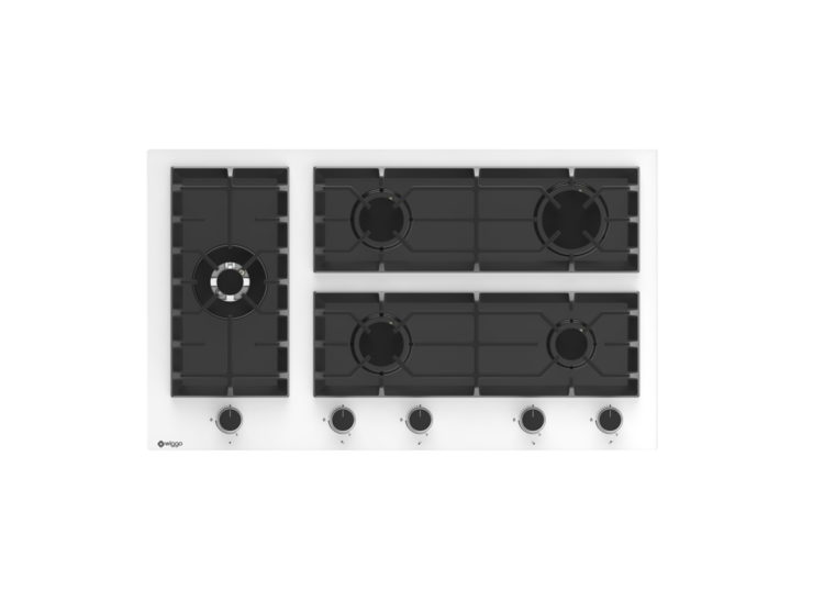 Wiggo WH-G935GR(W) - Inbouw gaskookplaat met Wok - 90cm - Wit Glas