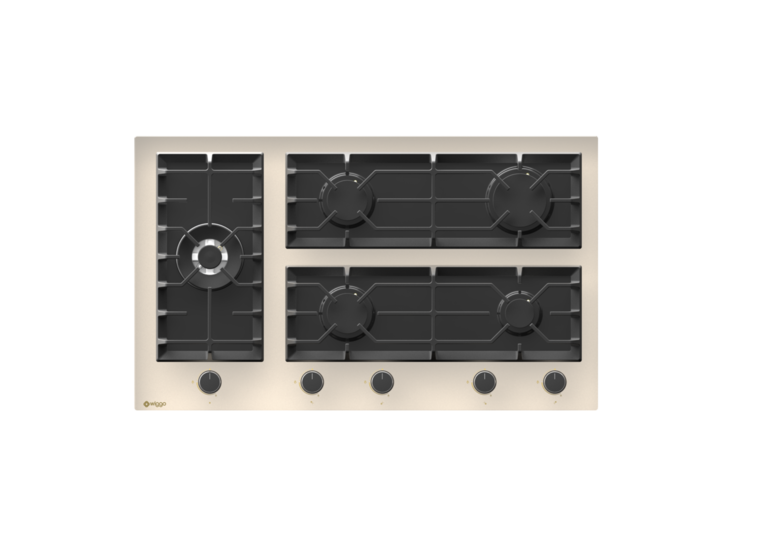Wiggo WH-G935GR(C) - Inbouw gaskookplaat met Wok - 90cm - Creme Glas