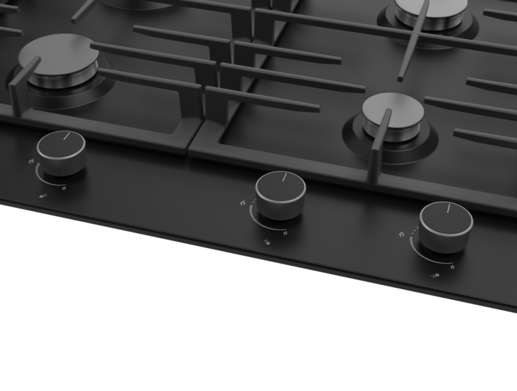 Wiggo WH-G934RR(B) - Inbouw gaskookplaat met Wok - 90cm - Zwart