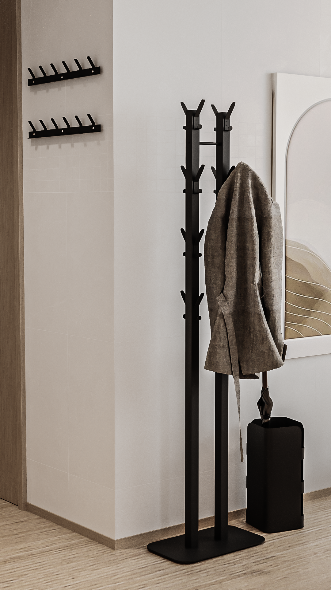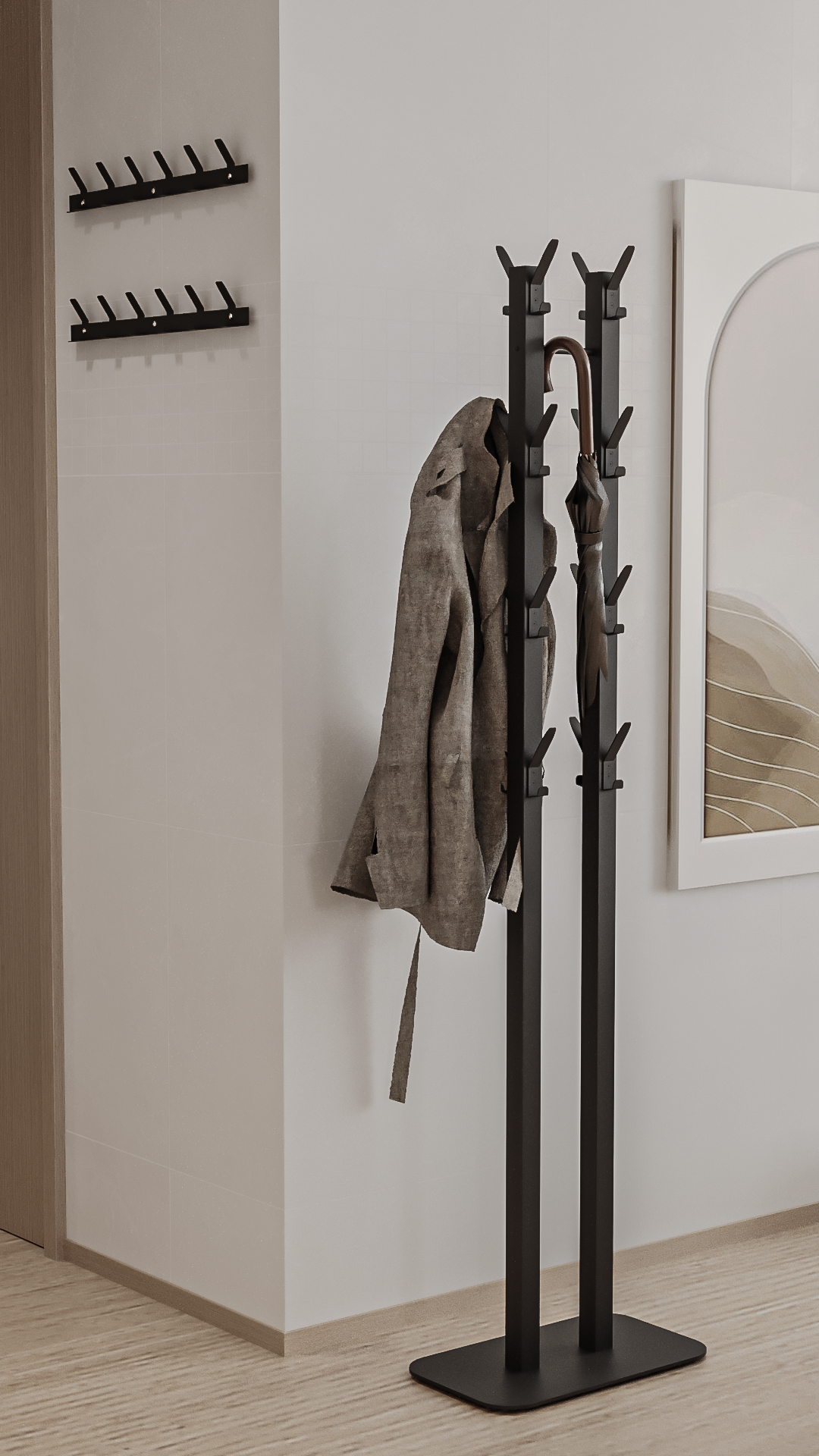 Gorillz Atomy XL - kapstok staand - Staande Kapstok - 32 haken - Metaal - 180 cm - Zwart