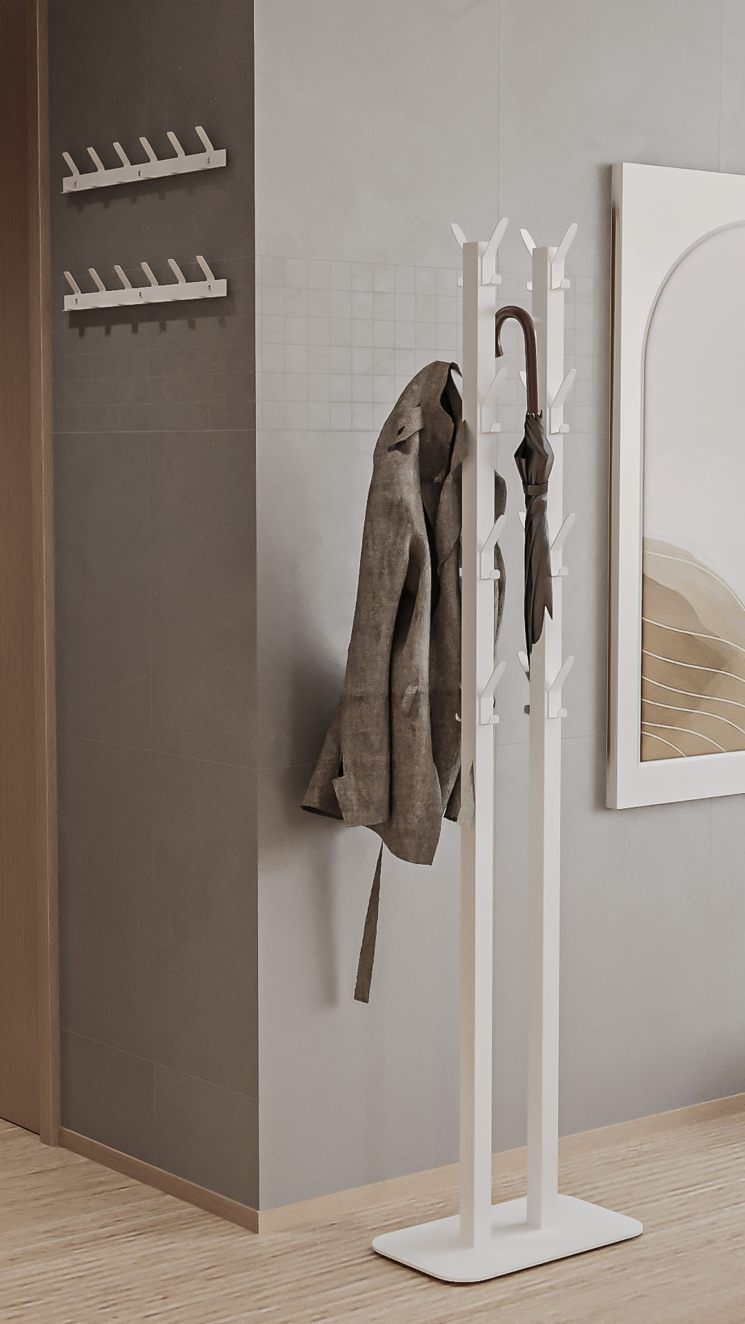 Gorillz Atomy XL - kapstok staand - Staande Kapstok - 32 haken - Metaal - 180 cm - Wit